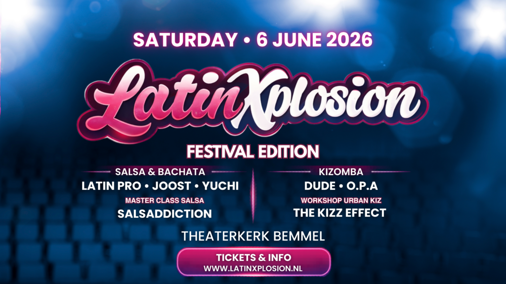 Latinxplosion – Salsa, Bachata, Kizomba & More | DJ LatinPro Production Bekijk Evenementen Agenda 25/042026 2 Dance area's LatinXplosion Koop Ticket 23/052026 2 Dance area's LatinXplosion Koop Ticket 06/062026 2 Dance area's LatinXplosion Koop Ticket 01/082026 LatinXplosionfestival Koop Ticket Foto's