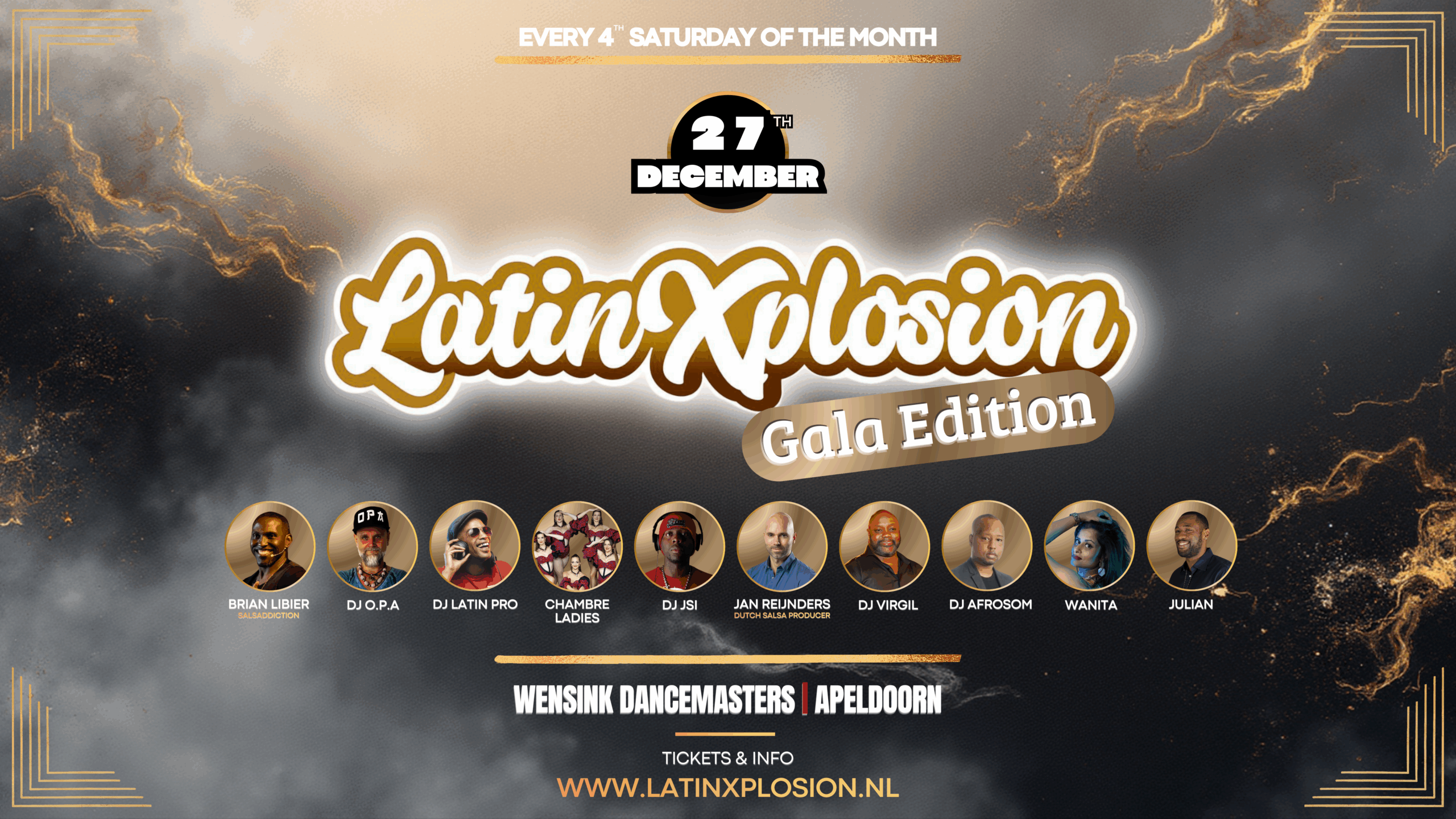 Wensink Dance Masters Musschenbroekstraat 19, Apeldoorn, Gelderland, NederlandKoop Ticket Hier ---> DJ Latin Pro presents ☆☆☆LATIN-X-PLOSION☆☆☆ Gala Edition Op zaterdag 27 december 2025 vind LATIN-X-PLOSION • Gala Edition plaats te Wensink in Apeldoorn. Latin-X-Plosion - Gala Editie bestaat uit 2 dans-area’s speciaal geselecteerd voor de ultieme Latin & Afro experience. Met verschillende top dj’s achter de draaitafels, krijg je gegarandeerd een spetterende dansavond […]